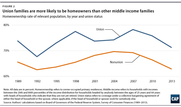 2. “Union members” refers to those households who self-identify as working in a job that is covered by a collective bargaining agreement in the Survey of Consumer Finances.