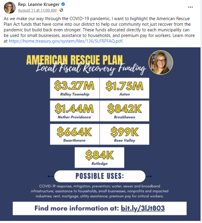Meanwhile, state and local governments continue to use ARP funding to revitalize their communities. Last week Indiana and New Jersey won approval for plans to use ARP money to safely reopen schools. Schools such as Arkansas Tech and Erie County Community College have used ARP funds to cancel student debt and provide relief to students struggling from the pandemic.