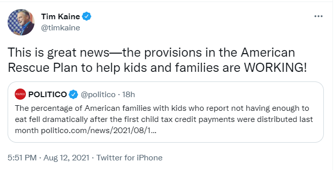 Last Friday, the second round of Child Tax Credit payments went out to more than 61 million children and their families. This comes after lawmakers praised new Census Bureau data showing that the first round of child tax credit payments slashed hunger rates by nearly 24 percent to the lowest rate recorded since the beginning of the pandemic.