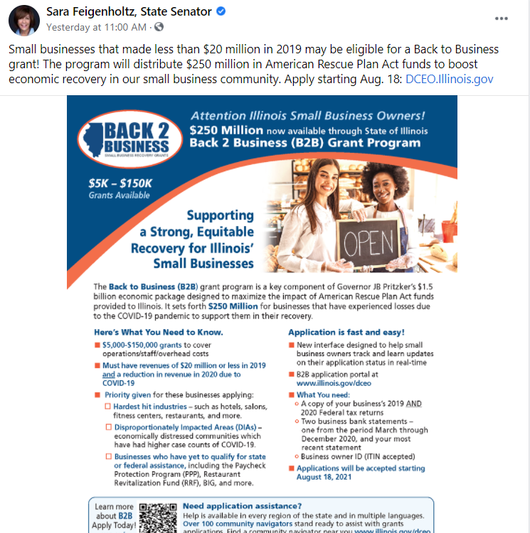 IL: Illinois launches $10 million grants for tourism attractions and festivals. [The Telegraph, 08/10/2021]
