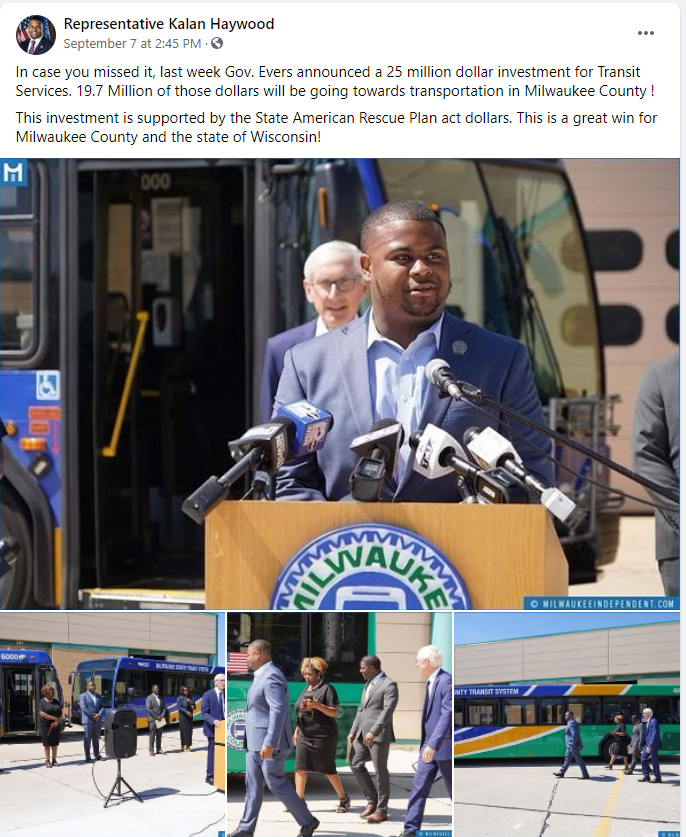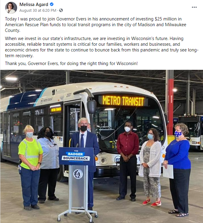 WI: $25 Million In Federal Money Invested In WI Urban Transit: Evers. [Patch.com, 08/30/2021]
