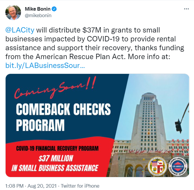 CA: COACHELLA VALLEY THEATERS RECEIVE PORTION OF $19 MILLION IN COVID RELIEF FUNDS. [NBC Palm Springs, 08/20/2021]