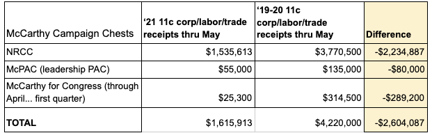 McCarthy has always been a prolific fundraiser and it is the primary reason he was elected to lead the House Republican caucus. The first quarter numbers were not good for his members and he’s looking to bring back corporate PAC contributions by calling them out for corporate “wokeness”, diminishing and covering up President Trump’s culpability for the riots, and continuing to block an independent investigation into the events on and around January 6th.