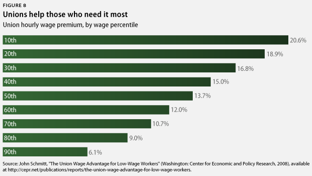 Unless policymakers strengthen worker voice and power, the middle class will remain at risk. Workers are better off when they have a collective voice: They earn more in the labor market and can better stand up for their interests in democracy.