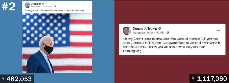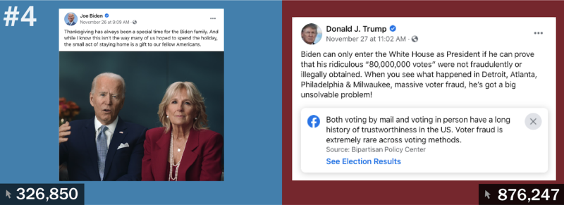 5 best-performing Facebook posts by total interactions among 200 of the largest conservative and progressive pages for the week of November 24–30, according to data from NewsWhip.