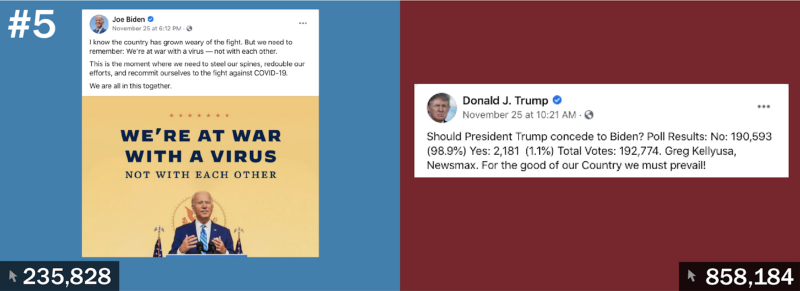 Trump and his conservative allies, however, continue to refuse to acknowledge the transition. In fact, nearly all of the top 500 posts from conservatives last week still falsely claimed some sort of voter fraud or election rigging.