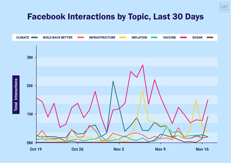 Despite the Build Back Better Act’s potential to be the most significant climate investment in decades, the volume of interactions on Facebook for the topic continues to be relatively low.