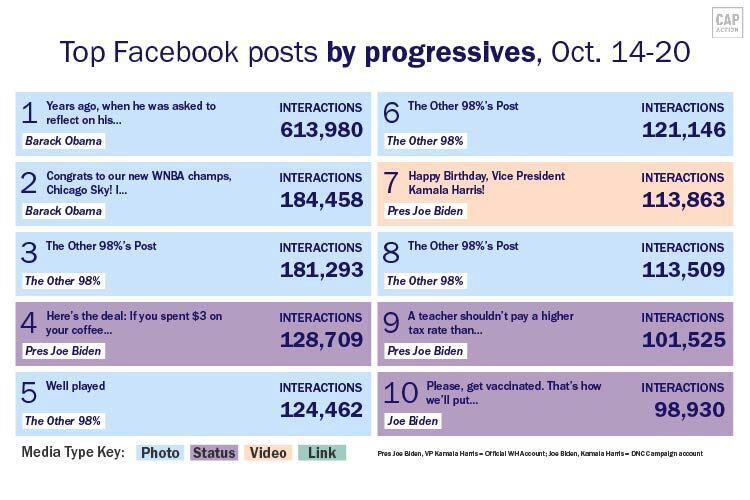 Top ten Facebook posts from progressive pages over the last week, according to data from NewsWhip.