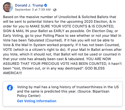 Adding an information link to a post that questions the legitimacy of vote by mail and undermines our democracy is not an acceptable solution.