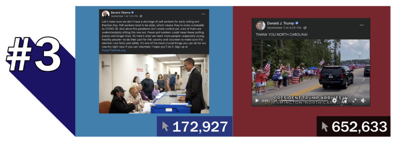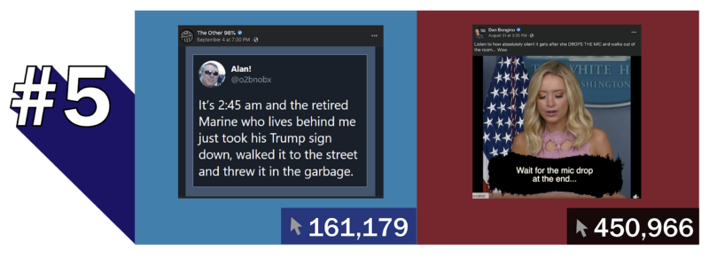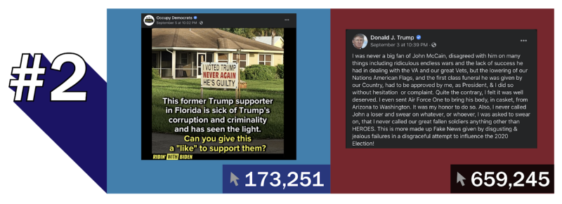 5 best-performing Facebook posts by total interactions among 200 of the largest conservative and progressive pages for the week of August 31–September 6 according to CrowdTangle