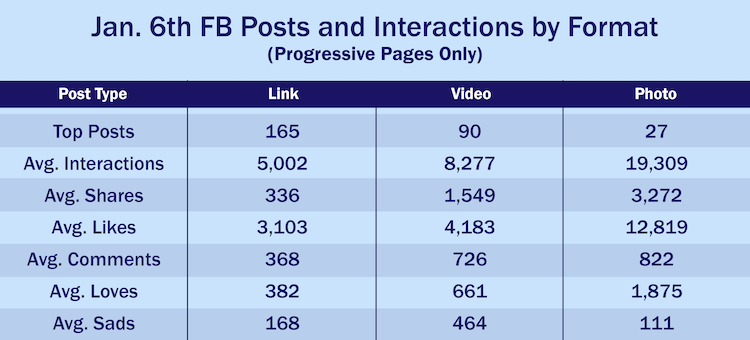Analysis of the top Facebook posts related to January 6th in the U.S. (progressive pages only), according to data from NewsWhip.